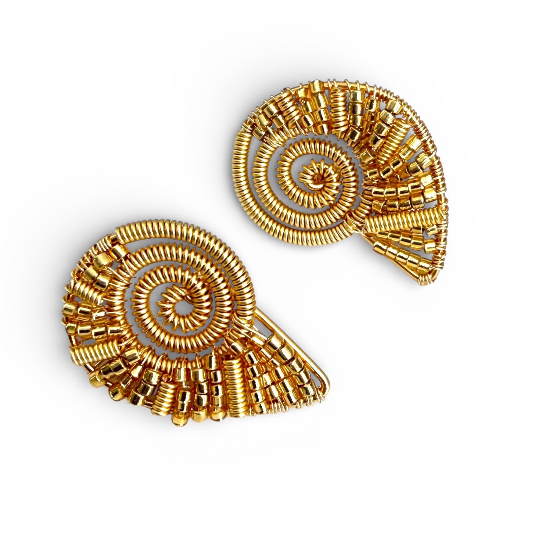 Los aretes Amonitas, elaborados mediante la técnica de alambrismo, ofrecen un diseño auténtico y colorido. Su confección permite una durabilidad superior, mientras que sus tonos vibrantes aportan un toque distintivo a cualquier atuendo, siendo ideales para el uso diario.